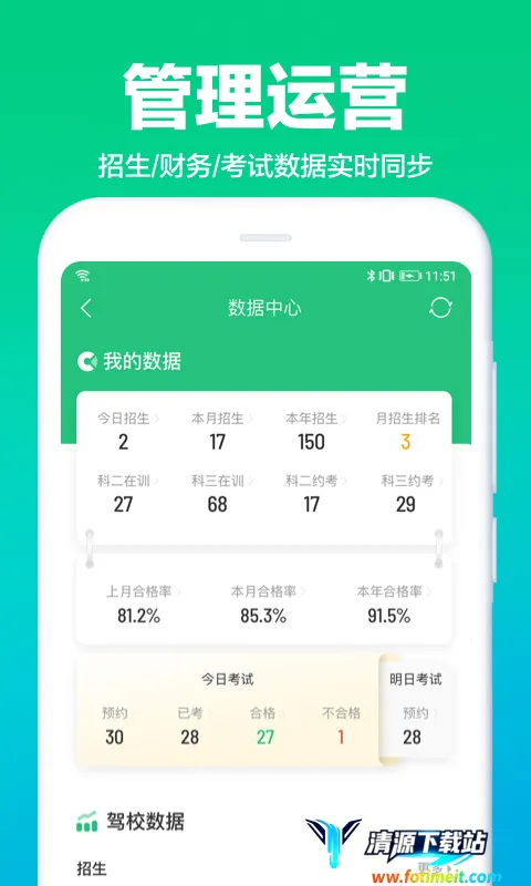 1. 全面管理:能实时掌握学员档案、招生统计、考试记录、财务报表、员工绩效等信息,方便驾校及教练统一规划管理。