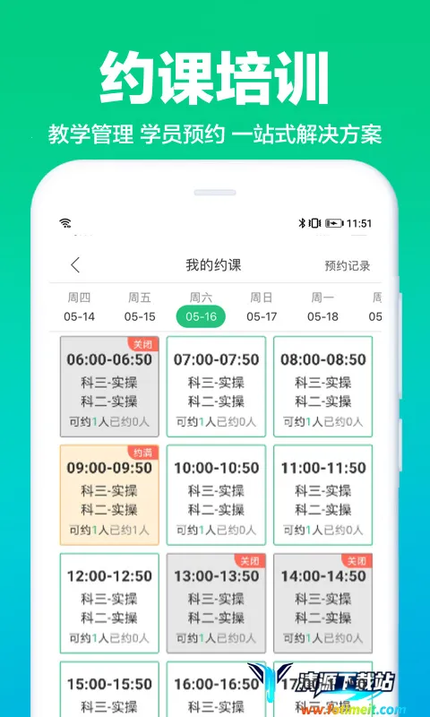 2. 高效约课:实现预约培训智能化管理,学员预约、教练排课多种模式,教练实时获取课程安排,教学培训更高效。