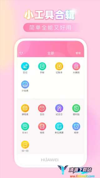 2. 界面超可爱:采用粉粉的卡通色彩与卡哇伊图标界面风格,让人眼前一亮。