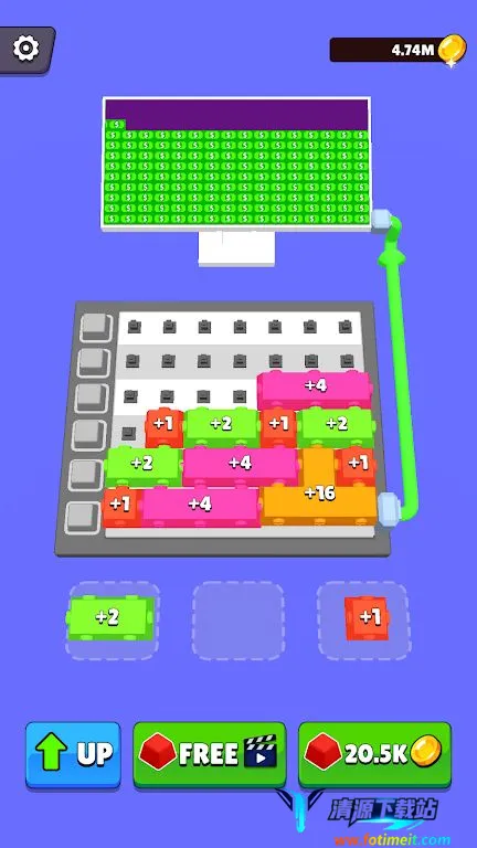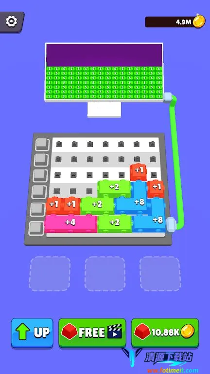 金钱键盘游戏中,玩家可放置按钮开始赚钱,通过合并按钮升级获取更多收益,没有按钮就无收益。能创建专属键盘,点击越多收益越多,不断合并按钮,朝着成为亿万富翁的目标点击畅玩。