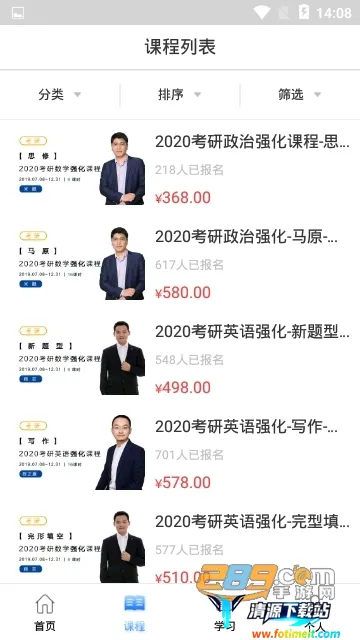 2. 丰富课程资源:涵盖考研公共课与专业课的高质量录播课、直播课,还有面授课程等,智能分类让你轻松找到所需。