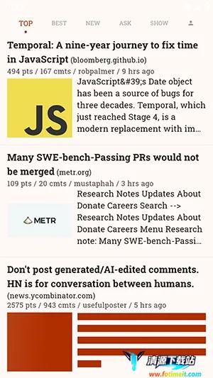 Hacki能帮你轻松解决查找技术分享文章的问题。它是一款基于Flutter框架开发的优质HackerNews客户端,专为极客程序员与科技爱好者打造。进入软件后,点击SHOW板块,这里有很多文章内容,点击想看的文章,就能进入详情界面查看文章信息啦。它支持首页最新提问展示、招聘等全分类信息流,完整覆盖HackerNews官方所有内容板块,还能实时同步官方热门文章、技术讨论、创业项目、行业动态,确保信息及时准确全面。其基于Flutter跨平台框架开发,一套代码多端运行,在不同手机平板设备上均能保持统一流畅稳定的使用体验,应用启动速度快、页面切换顺滑、列表滚动无卡顿,低配置设备也能流畅运行。有了它,让你获取和参与技术社区讨论更高效、更便捷。