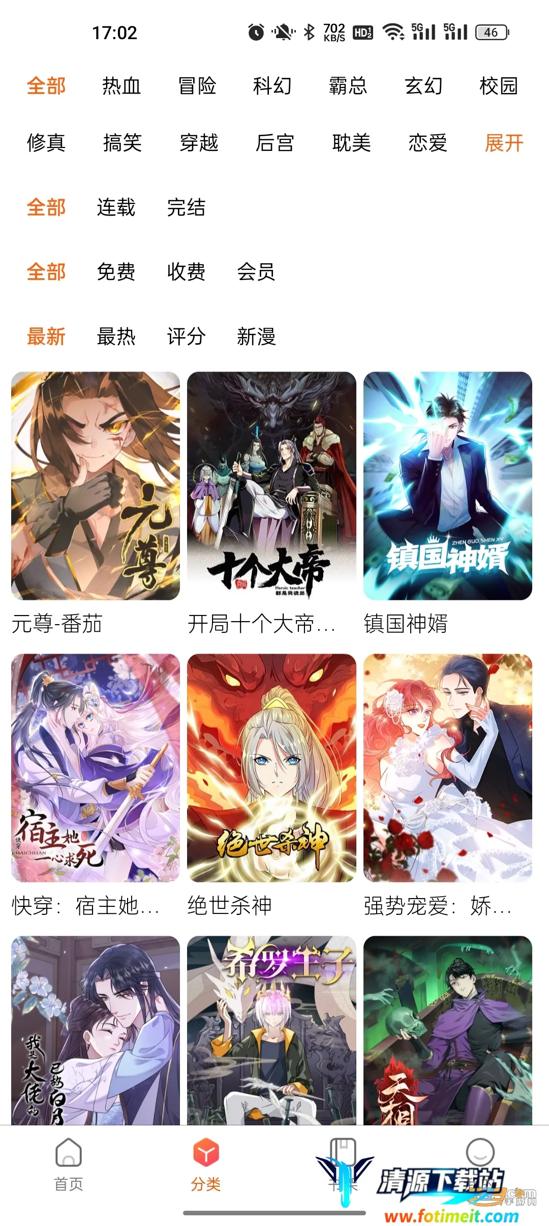 六漫画是一款超棒的漫画阅读软件。它能解决你免费阅读各类漫画的需求,带来极致的阅读体验。功能超强大,支持高清在线阅读和离线下载,涵盖日韩港台欧美等丰富题材。有简单明了的搜索引擎和分类整理功能,找漫画超轻松。智能推荐根据你的阅读习惯推送合适漫画。软件亮点众多,可将喜爱漫画下载离线阅读,节省流量;支持关注漫画或作者,及时获取更新。界面简洁易用,操作方便。每日更新人气列表,提供最新漫画。不管是热门连载还是经典完结漫画,都能通过下拉式免费阅读,章节完整无删减。还能第一时间掌握最新漫画消息,同步全网更新,随时追更,让你尽情享受漫画世界的乐趣,从此追漫不烦恼。