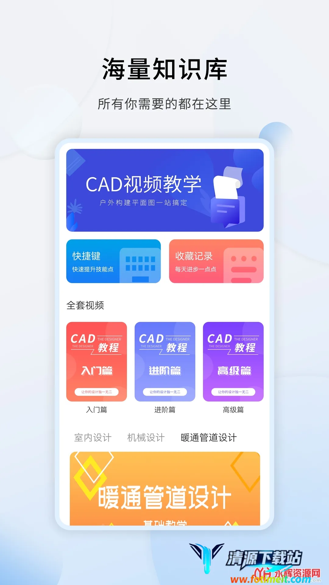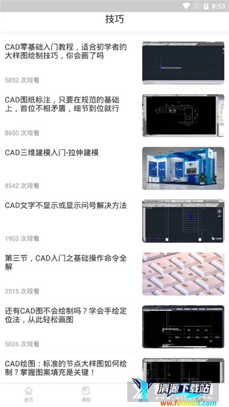 2. 课程分类超细致:将CAD知识按不同主题和难度分类,像基础操作、二维绘图、三维建模、建筑设计应用等,方便用户针对性选学内容。