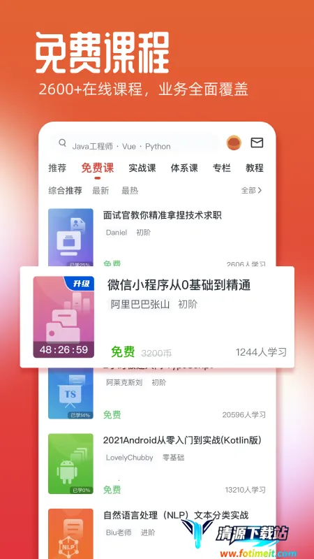 2. 自定义学习路径:支持根据自身需求选择合适课程,自由掌控学习节奏,更贴合个人学习进度。