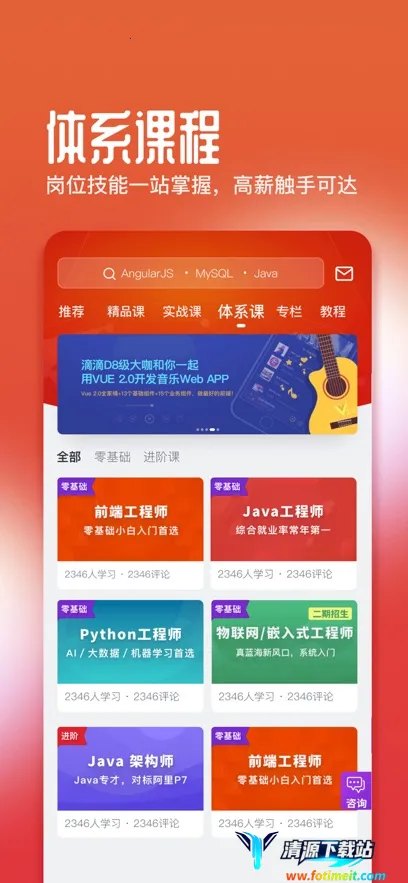 慕课网2025官方正版是专业IT技能在线学习平台,有超10000免费视频课程,涵盖多领域。课程短小精悍,400余位专家亲授,支持离线下载,还有在线技术手册等,助你提升职业竞争力。