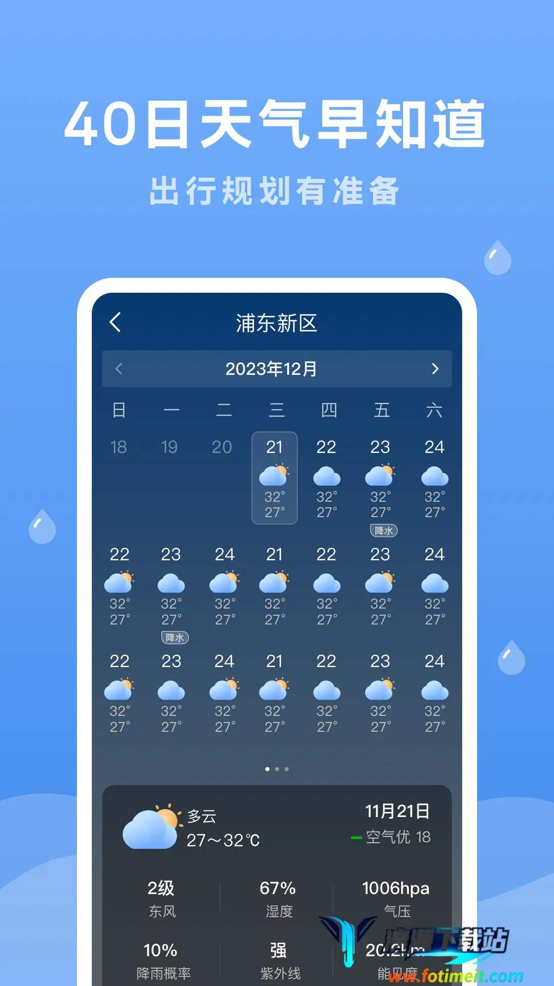 2. 功能丰富多样,能查看全国各地实时天气预报,支持多时段天气查询,包括未来15日和40日天气情况,还有恶劣天气及时预警。