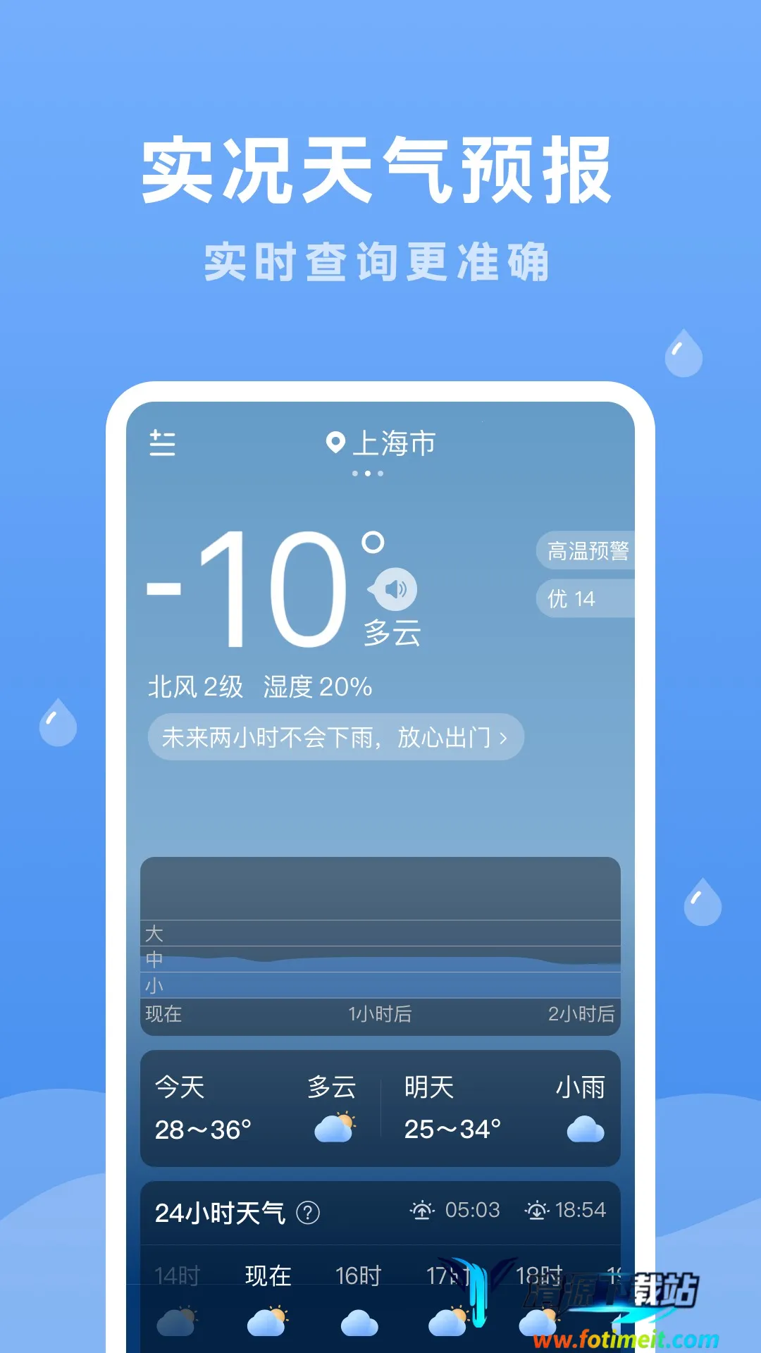 想在2023年免费下载安装正版润雨天气?它能满足你的需求!润雨天气提供超全面的天气相关预报服务。这里有全国各地的实时天气预报,数据来自多家权威数据源,真实性超高。能查看6项空气质量指标、9种生活指数,支持2小时内雨雪预测、24小时逐时天气查询,还有未来15日和40日的天气温度空气质量情况。恶劣天气会及时预警,像高温、寒潮、暴雨、台风、霾等。它的功能超实用,短期雨雪能两小时内精准预报降雨趋势,让你放心出门;预警推送及时;自动定位当前位置,还能手动添加城市;真人语音播报,动态背景展示,天气数据齐全。遇到大雾暴雨等恶劣天气会提前预告和预警,分享天气信息时还带有空气湿度、空气质量等详细参数,方便实时对比,多种模式随心体验,背景颜色也能修改,超便利!