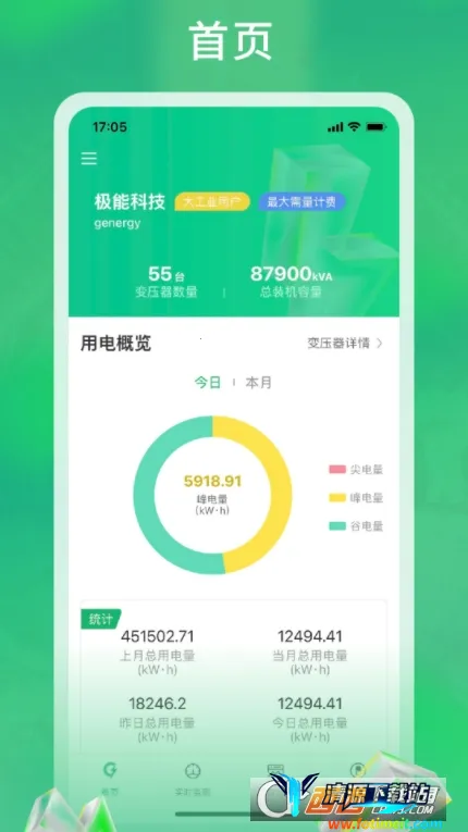 极能能耗最新手机版可实时监测电站,查看用电概览、统计电量,有分析曲线图与告警消息。提供电力数据监控等综合服务,具备远程控制、自动录音等功能,亮点是用电异常报警、24 小时监控及历史数据分析,使用便捷贴心。