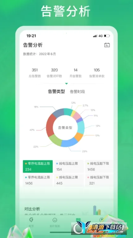 2. **安全告警**:能查看告警消息及分析图,当用电异常报警时,应用会推送报警信息至手机通知栏,为您及时预警,保障用电安全。
