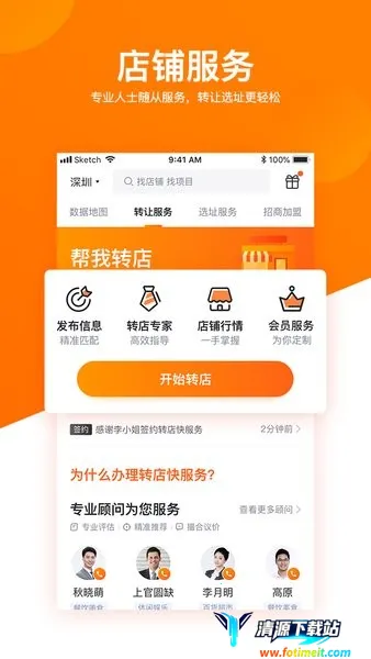 3. 团队支持:千名顾问线下实勘,协助议价,百名客服全程追踪服务,全流程选项目、找场地、经营管理和店铺转让一站式全流程服务。