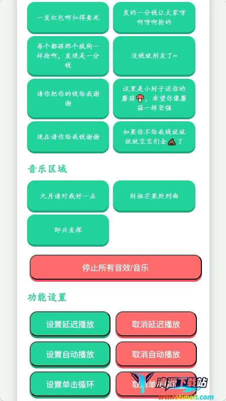 核爆酱肘子语音盒安卓版是一款实用的语音包工具,专为日常娱乐与场景互动打造。内置丰富音频资源,界面简洁,操作简便,有多种功能设置,如延迟、自动播放等,还包含各类经典语句、趣味片段与热门素材。