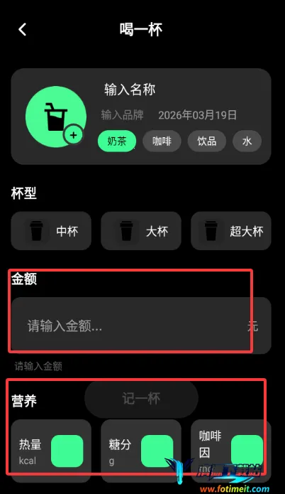 2、记录自己喝的咖啡金额、热量