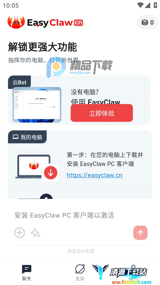 2、登录以后,我们可以按照提示,在自己的电脑设备上安装EasyClaw PC客户端,然后登录与手机版同一个账号,即可实现远程下达指令;