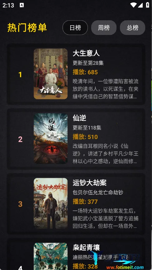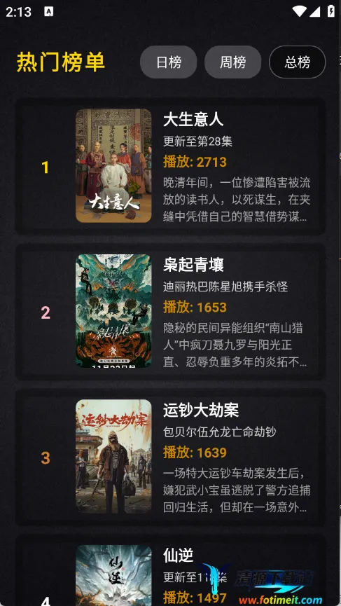 3. 榜单助力找热门:设有日榜、周榜、总榜等多个榜单,助您快速找到当下最热门的影视。