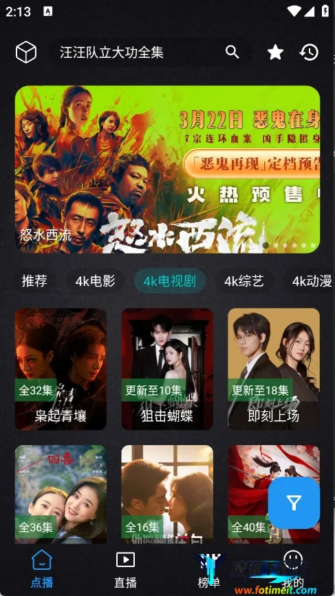 清流影视最新手机版是提供4K超清影视资源的视频播放APP,含电视剧、电影、动漫、综艺版块。有日周总榜,能精准推送。支持一键找片、分享互动、智能推荐,还有关键字搜索、收藏等功能,使用方便。