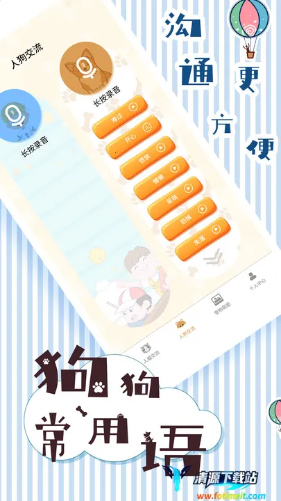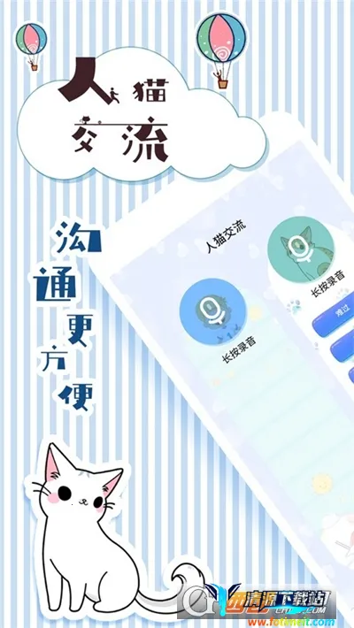 人猫翻译交流器是款宠物交流软件,能汇集猫狗交流词类。通过录制音频实现人宠交流,可将人声转猫语,长按录猫声懂其情绪。界面绿色无广告,使用简单,随时随地能与宠物亲密交流。