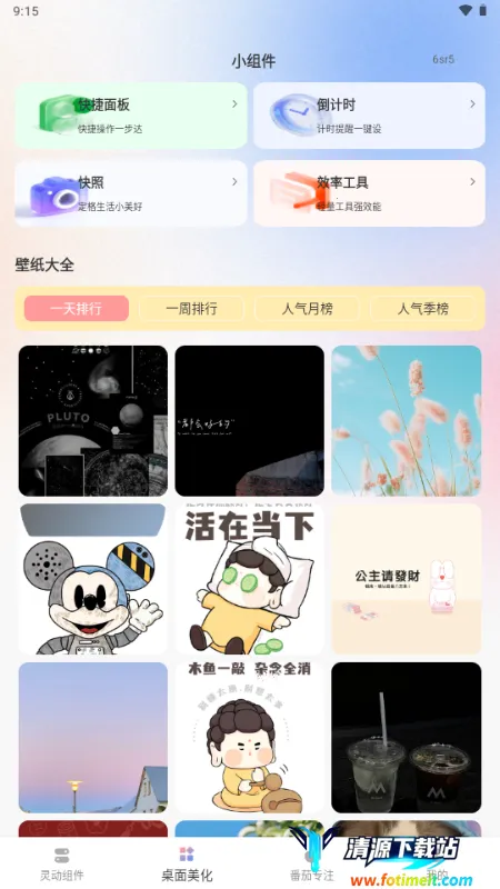 1. 提供丰富个性化组件与壁纸资源,可自由组合搭配,海量高清壁纸随心换,轻松打造专属美观桌面。