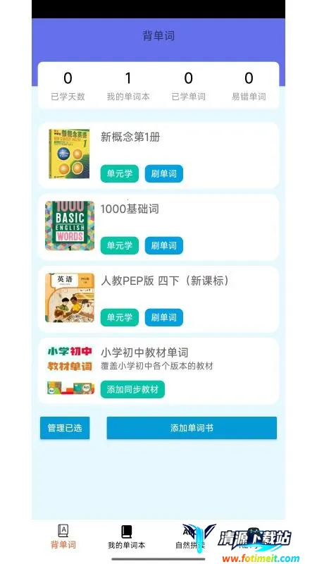 3、添加成功后即可开始刷单词或进行单元练习