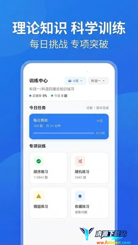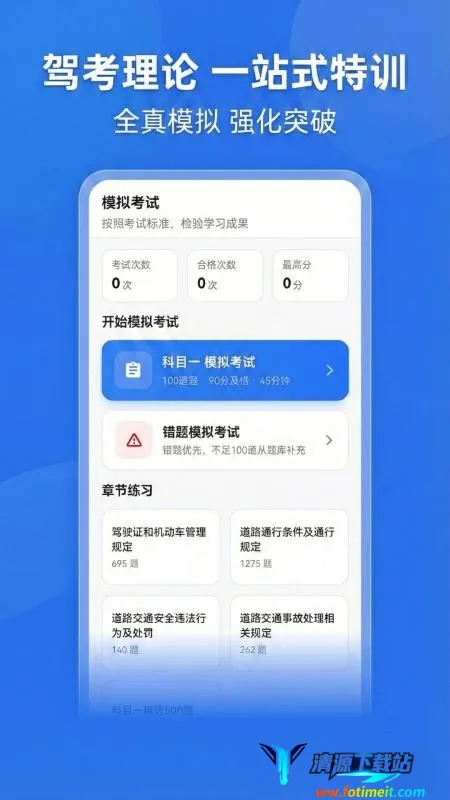 驾考科目一路通是为驾校学员打造的试题类 app。有海量训练题精准覆盖考点,能一站式指导做题,记录错题,提供全真模拟练习。还可在个人中心了解学习数据,预约考试,提升理论知识,方便查询成绩,助力通过驾考。