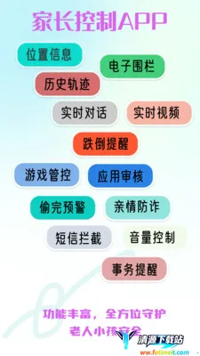 这款应用亮点众多。它能实时获取被守护端位置信息并显示实时视频,即便对方不方便接视频也能直接通话。具备跌倒提醒,疑似跌倒自动拨通紧急联系人电话。防偷玩预警可了解孩子是否偷玩手机并发出警报。游戏管控能管理孩子使用 APP 时间。应用审核让孩子安装不良应用需守护端审核通过才可打开。还有电子围栏设定安全范围,位置轨迹可查某个时间段位置。通话查询能拦截诈骗推销电话,音量控制可判断对方是否因静音不接电话。新增亲情防诈、事务提醒、使用统计及邀请返现功能,全面守护老人小孩安全。