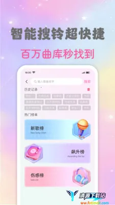 手机铃声全免来电是铃声下载设置平台,有超多铃音,涵盖抖音热榜等特色专区。智能推送热门铃音,操作顺滑,从试听下载到设铃一气呵成。我的下载自动保存,列表清晰,榜单推荐全品类覆盖,满足各类铃音需求。