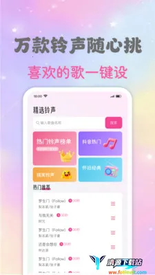 2. 操作便捷:智能选择当下热门铃音,首页直接推送,点开就能听。从在线试听极速下载到快速设铃,全程操作顺滑,无需跳转手机系统设置,来电闹钟铃音随心换,一步操作搞定提示音。