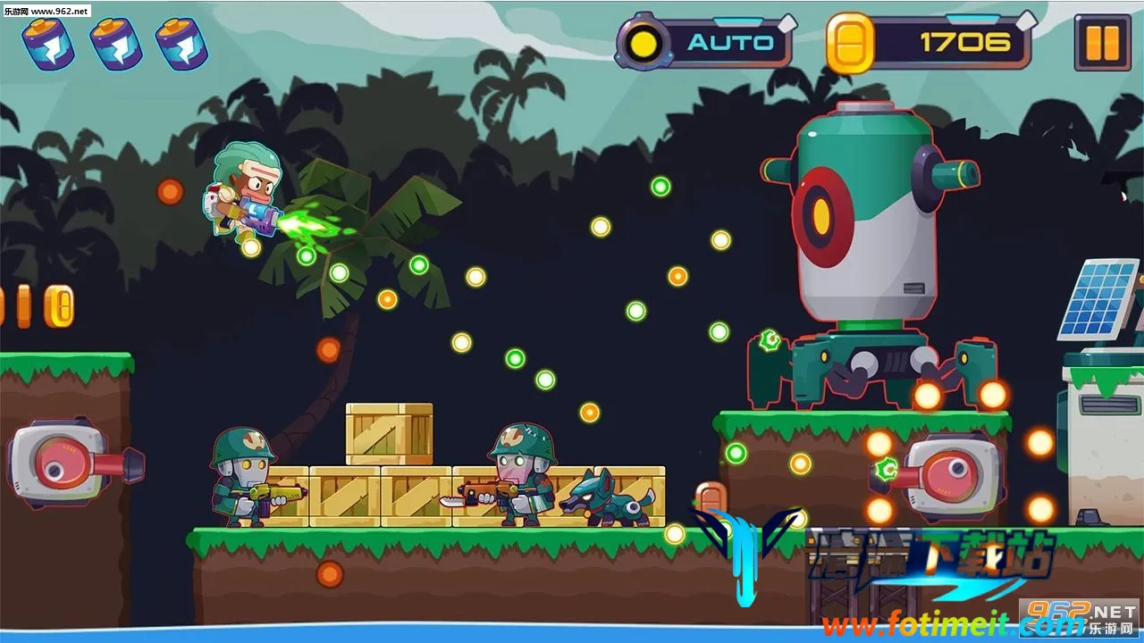 合金射手安卓版是一款Q版卡通画风的横版2D射击闯关游戏。玩家扮演精英小队成员,在被机器人占领的小岛作战,可挑选角色、武器,利用道具闯关,还有独特隐藏关卡、武器装备更换及角色养成等玩法。