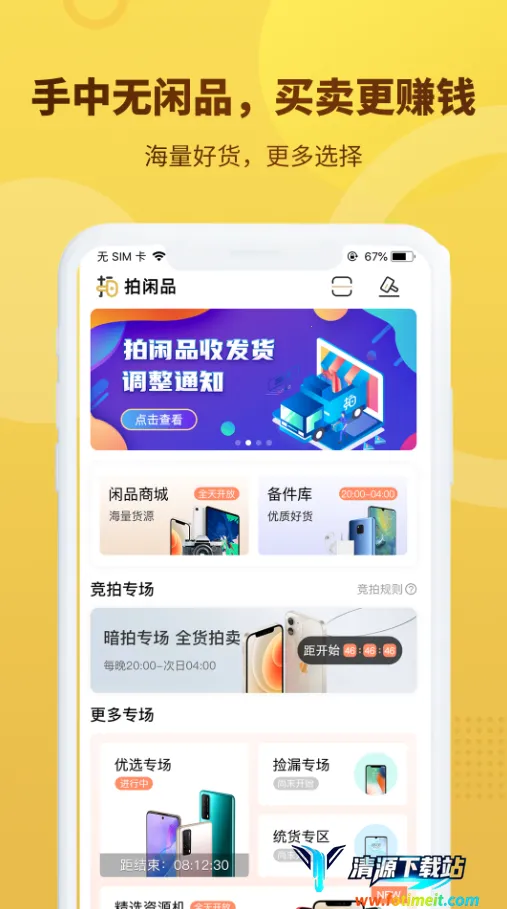 拍闲品是向上集团旗下二手数码交易平台,由杭州意象科技开发。提供质检服务,有专业团队保障品质。品类全,涵盖多种数码产品。买卖流程简单,售后有专属客服,0服务费,海量货品自由交易,还有竞拍专场。