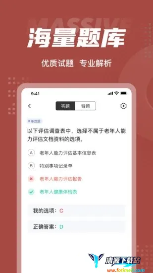 老年人能力评估师考试聚题库最新手机版亮点十足。它支持随时随地利用空闲时间做题复习,通过文字、语音、拍照等多种输入方式快速搜题找答案,方便快捷。拥有模拟试卷、历年真题、快速练习、考点练习等多种学习与做题模块,能全面回顾知识点,提高备考效率。还能让您随时查询考试的普通练习题及答案,满足您的备考需求。无论是新手还是有基础的考生,都能借助它找到适配的学习方案,为顺利通过考试提供全方位支持。
