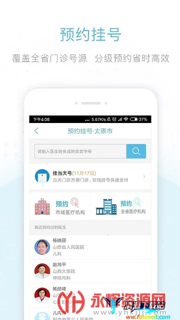 健康山西最新手机版是山西省卫生和计划生育委员会主导的全省统一预约诊疗服务平台官方 APP。覆盖全省医院科室专家,可在线预约挂号、咨询医生,还有健康头条、诊疗提醒等功能,方便群众便捷就医。
