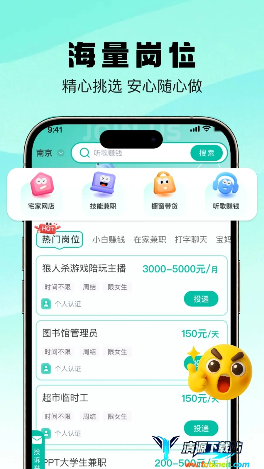3、信息真实可靠:所有兼职职位均经过真实性核验和多重审核流程,且信息随时更新,从源头守护用户的求职安全,大幅降低求职过程中的潜在风险。