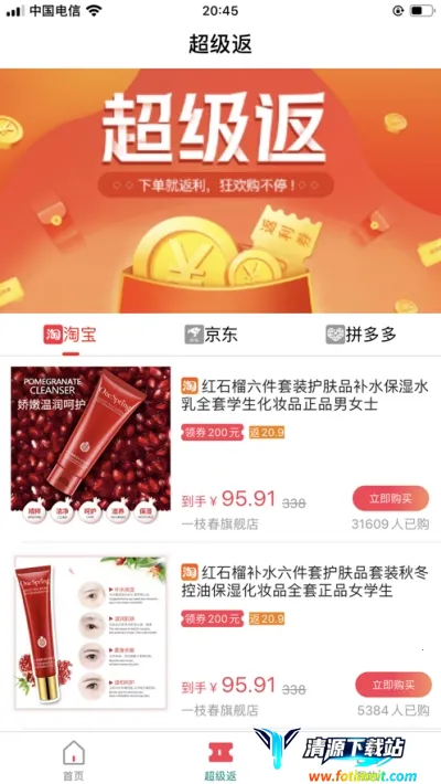这是一款综合性购物软件,能让用户省钱又赚钱。它与多个电商平台合作,覆盖淘宝、天猫、京东、拼多多等,还有外卖、出行平台如美团、饿了么、携程等。用户领券下单超省钱,还能获取高额返利。分享商品给好友购买,自己就能赚取佣金奖励。新人专享福利超诱人,首单0元,新人免单专区爆款好物0元任选。0元夺宝活动天天有,奖池更新,爆款单品有机会不花一分钱带回家。吃喝玩乐购都有优惠特权,全方位满足用户需求。软件不断优化细节,提升用户体验,是喜欢购物人群的不错选择。
