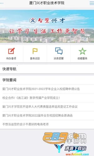 智慧兴才是厦门兴才职业技术学院的校园服务软件,为师生提供教务服务。涵盖新闻通知、待办事项等功能,支持成绩查询、服务预约,还有潮流互动、动态推送,方便师生校园学习生活。