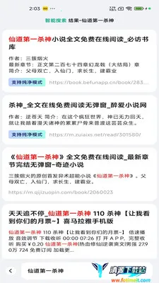 2、如图,会智能搜索相关小说资源。