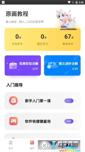 对于新手十分友好,提供详细教学视频,助其快速入门。精选大量素材工具,汇聚优质绘画教程,还能免费使用700种以上网点素材,有适合印刷的高画质。图文结合解构板绘细节,软件带学画出优美线条。能让用户快速了解二次元绘画,针对不同素材掌握绘画技巧,实时在线查询最全绘画信息。v3.6.7版本修复了一些bug,值得下载体验。