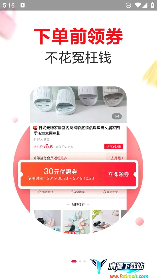 2. 提供每日更新的天猫淘宝大额优惠券和聚划算的优惠券,还有精选商品的9块9包邮和超值省钱的购物体验,能获得高达90%的超高返利。
