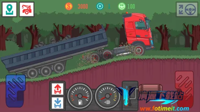 1、玩法简单易上手:采用2D横版过关玩法,操作简单,玩家轻松就能开启游戏,快速融入卡车驾驶的世界。