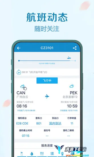 3. 贴心服务:提供里程查询、客票验真、航班动态、免票兑换、出行向导等贴心服务,还有行李查询、航延证明、中转住宿等特色服务。