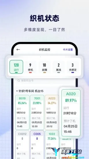 2. 功能全面:专为纺织厂打造,能查询实时生产数据,如织订单品种和今日效率等,还连接场内管理系统,有数据看板、织机监控、每日效率查询等功能。