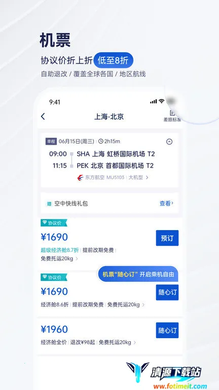 1. 一站式预订超便捷:可随时随地预订机票、酒店、火车票、用车等,覆盖范围广。机票涵盖国内外众多航线,酒店遍布全球多个国家和地区,火车票能随心订,用车服务包括接送机、租车自驾等,满足各种商务差旅需求。