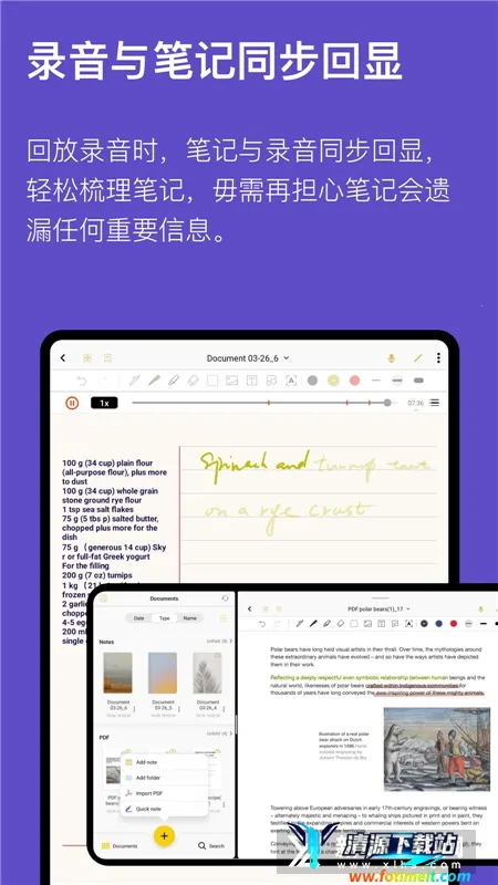 云记最新手机版亮点满满。它能将书写笔迹数据化,在纸上书写,笔迹实时同步到手机等电子设备,随心变换色彩、更改笔迹粗细。支持OCR智能识别,手写体秒变印刷体可直接复制。还能将声音和笔迹实时同步合成视频笔记。提供丰富多样的笔记本封面和纸张模板,满足个性化需求。具备科学高效的笔记管理,可创建多层文件夹组织文档,支持本地备份和云同步,多设备共享。PDF批注与编辑功能也很实用,让阅读和记录更便捷。