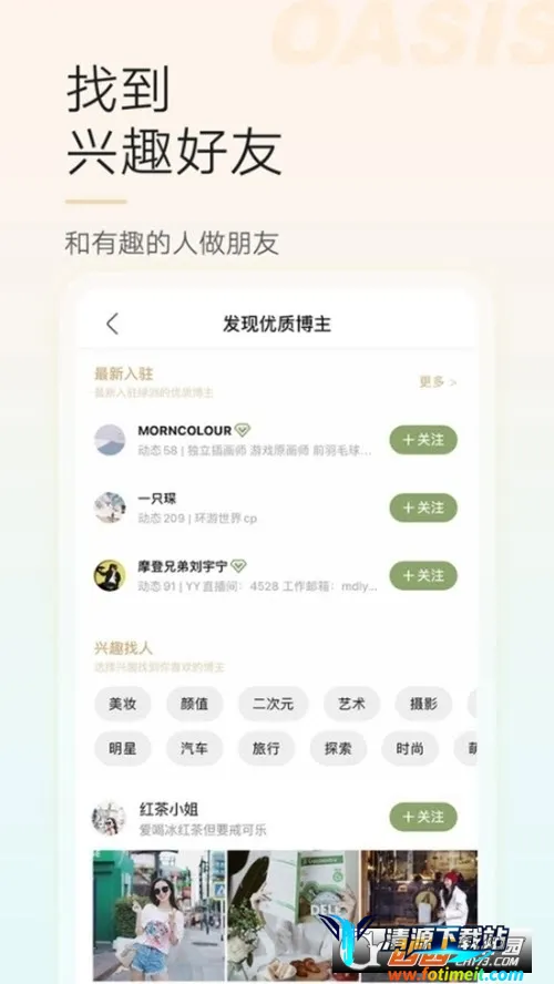 此外,绿洲有多种涨粉方式,如蹭明星流量、利用邀请码、微博发博评论求互粉、加入互粉互绿群等。软件亮点众多,如全新阵营玩法、主打娱乐分享、能和周边人打成一片感受美好等,为用户带来丰富社交体验。