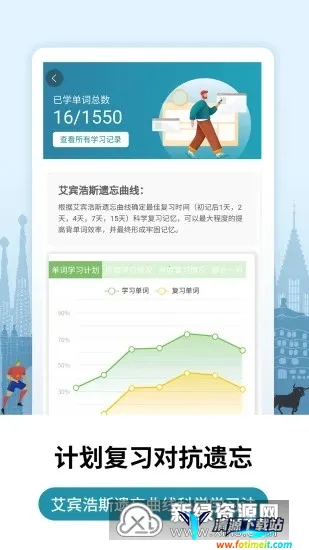1. 学习方式科学:采用Ebinhor日记忆忘记曲线科学程序,助力用户直接学习并提高成绩,合理复习单词,让牢记更轻松。
