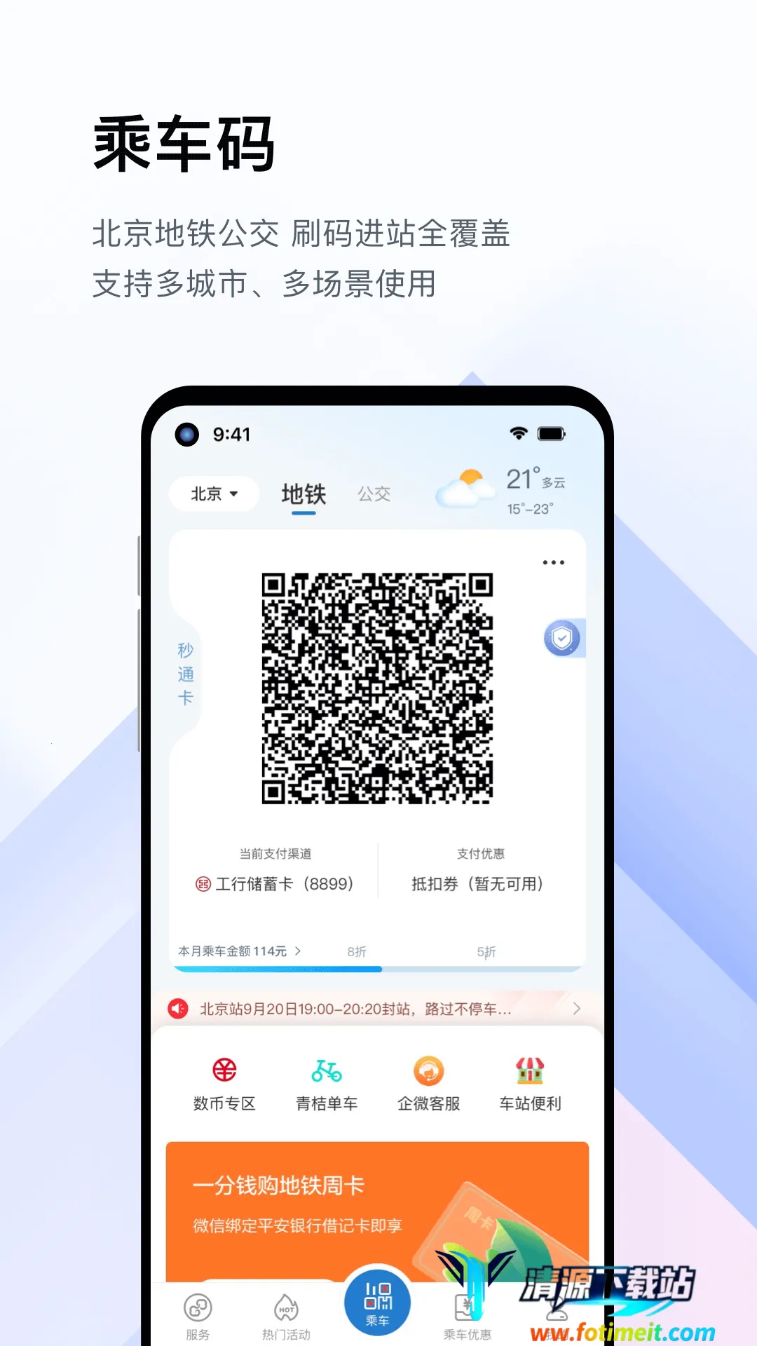 2. 出行便捷:支持二维码乘车、在线购票、电子计次票等功能,无需现金不用找零,扫码即走,信用支付先乘后付,告别排队与丢卡,进站乘车效率高。