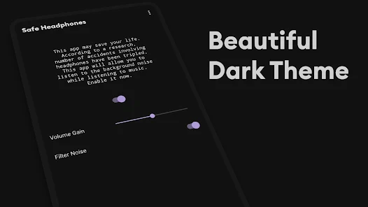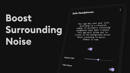 Safe Headphones Pro是一款超棒的软件,能满足你对安全聆听的需求。它有透明聆听模式,通过环境音增强与音频混合技术,播放音乐时同步放大关键环境声,提升户外安全性。智能音量衰减保护很贴心,设定连续使用时长阈值,自动降低音量,避免听力损伤。听力辅助功能实用,能增强人声频率,降低背景噪声干扰,可帮轻度听力障碍者改善交流清晰度。多类型耳机兼容广泛,支持蓝牙、无线、有线等各类耳机设备。其功能丰富,环境声增强可调节,能统计听力健康数据,设置安全音量限制,还有智能音频场景模式。用法简单,初始设置完成耳机配对后,日常使用通过通知栏就能轻松操作。它在安全设计方面理念先进,能有效解决佩戴耳机时环境感知缺失问题,帮助建立健康收听习惯,实用性强,强烈推荐下载!