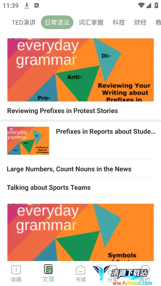 4. 包含TED演讲、BBC、VOA新闻、考研英语等实用内容,兼顾学习与娱乐,真人发音支持变速播放,优化音效营造语境,提升听力理解能力,内置生词本方便记录与分类。