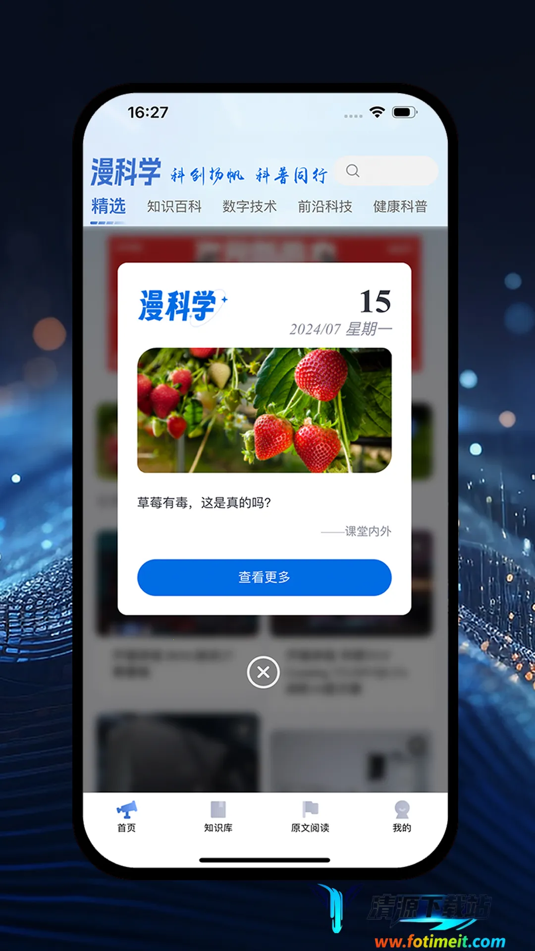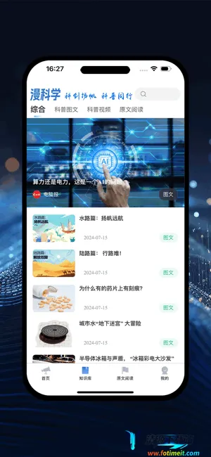 漫科学是重庆电脑报打造的趣味科普APP。涵盖十多学科,由专业编辑精选内容。采用立体教学,结合游戏与情商开发。有智能推荐,多媒体展示丰富。具备知识库、游戏等版块,支持多终端同步。