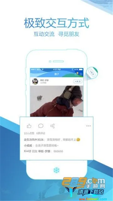 4. 特色社区交流:功能丰富的冰雪号汇聚各界账号,第一时间分享冰雪运动魅力与乐趣,开启玩家地带。