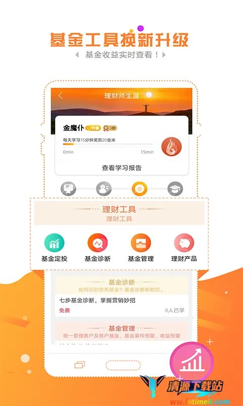 金魔仆最新手机版是北京金挚科技为银行从业者开发的金融理财应用。有海量职业进阶课程,能帮管理客户,提供专属提升计划,还有优选基金、智能决策等功能,操作简单,更新后页面优化、问题修复。
